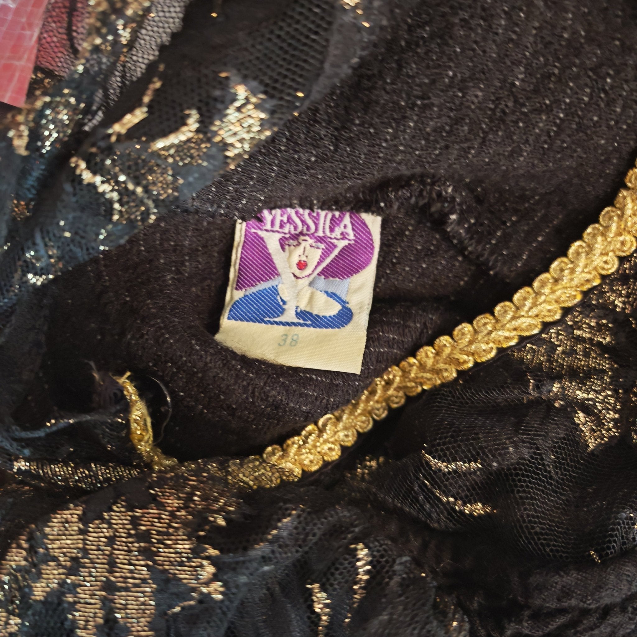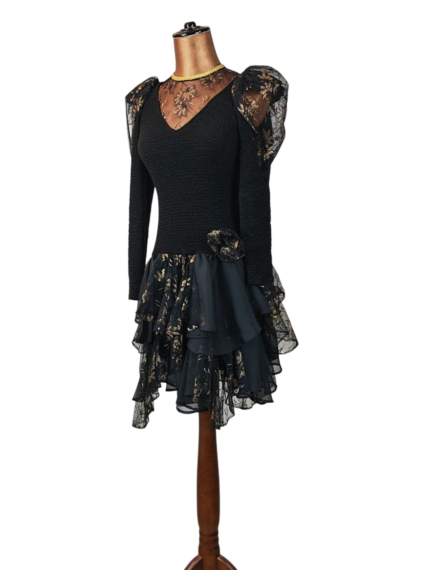 - black lace with golden flowers detailing
